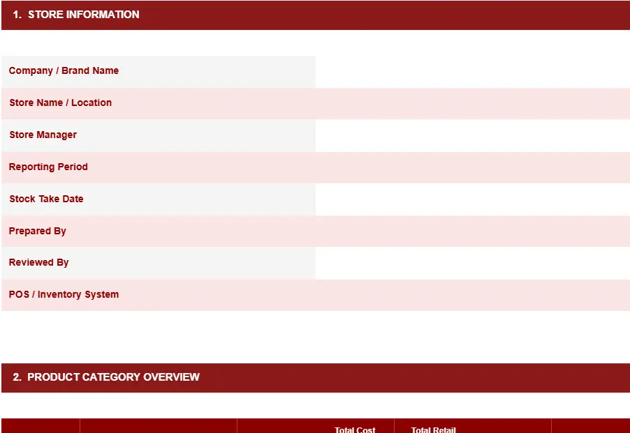 2. Retail inventory list template