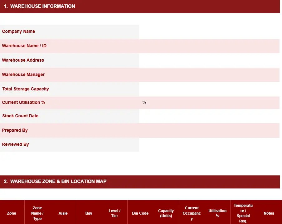 WAREHOUSE INVENTORY LIST TEMPLATE