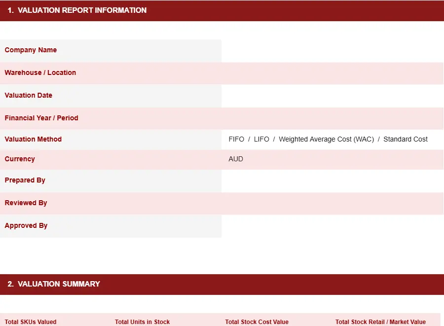 INVENTORY VALUATION TEMPLATE