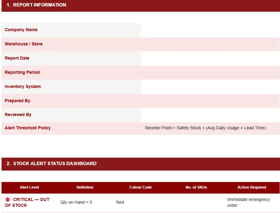 REORDER AND STOCK ALERT TEMPLATE