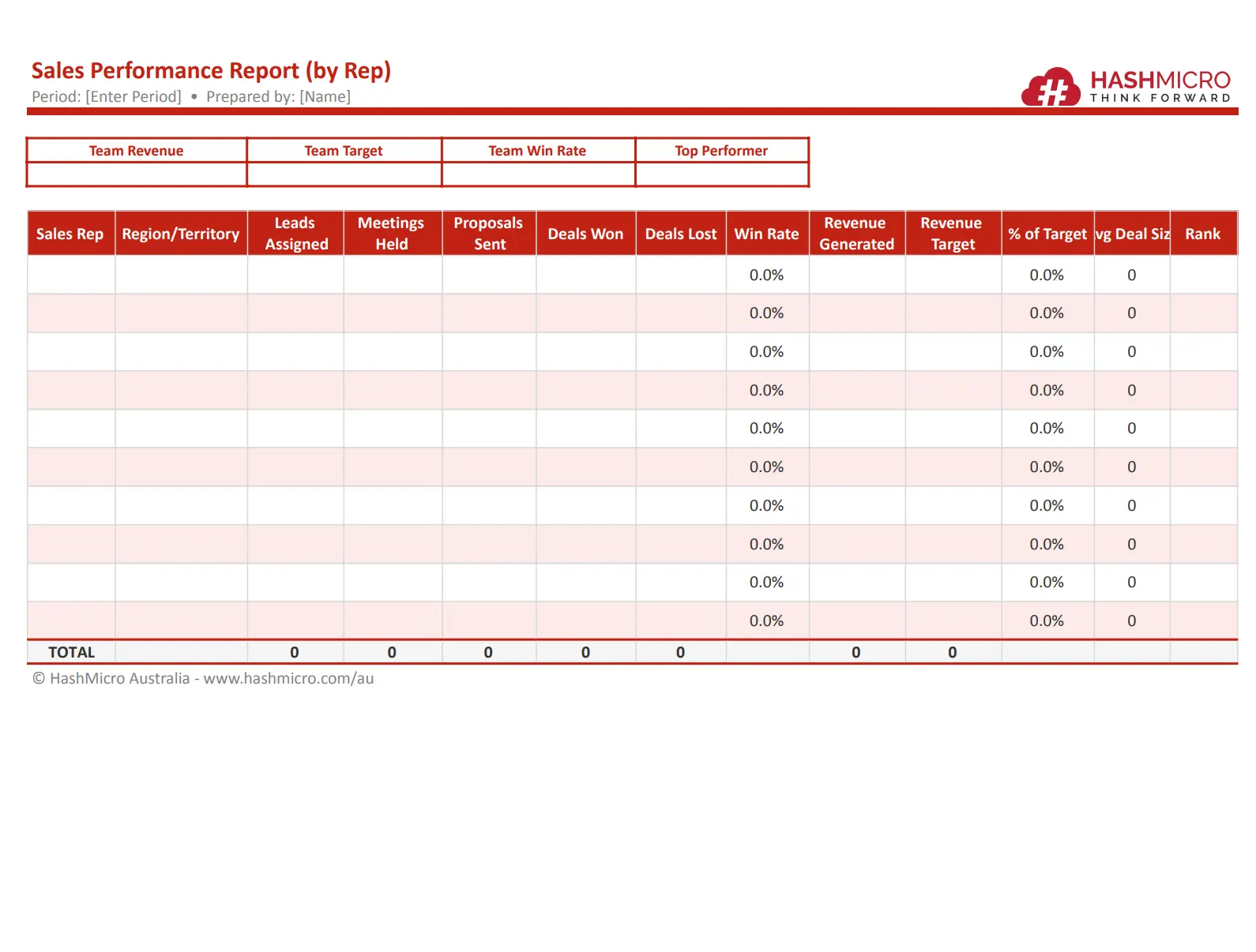 Distribute the report to relevant stakeholders and review it regularly. Use the findings to improve sales strategies, adjust targets, allocate resources, and drive stronger performance moving forward.
