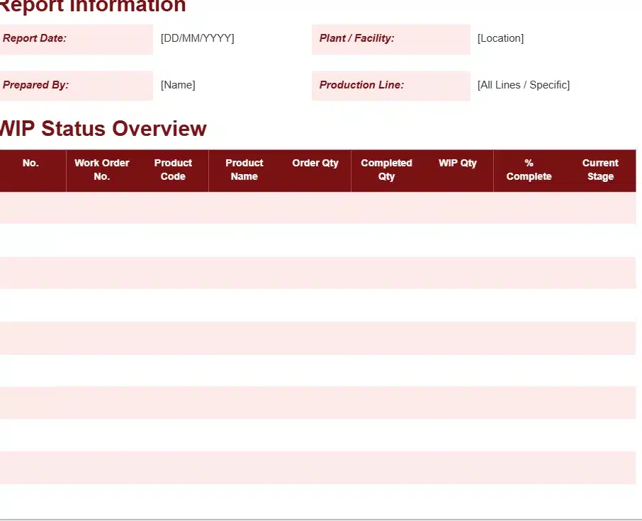 A production report should capture key operational data in a structured and consistent format. This ensures reports are easy to review and support accurate decision making.