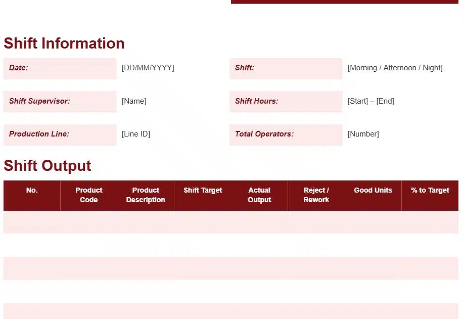 SHIFT PRODUCTION REPORT TEMPLATE