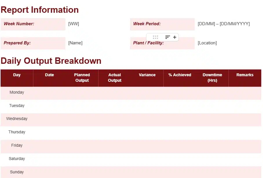 Production report templates help standardise reporting and make it easier to record operational data consistently. They provide a clear structure for tracking output, efficiency, and production issues.