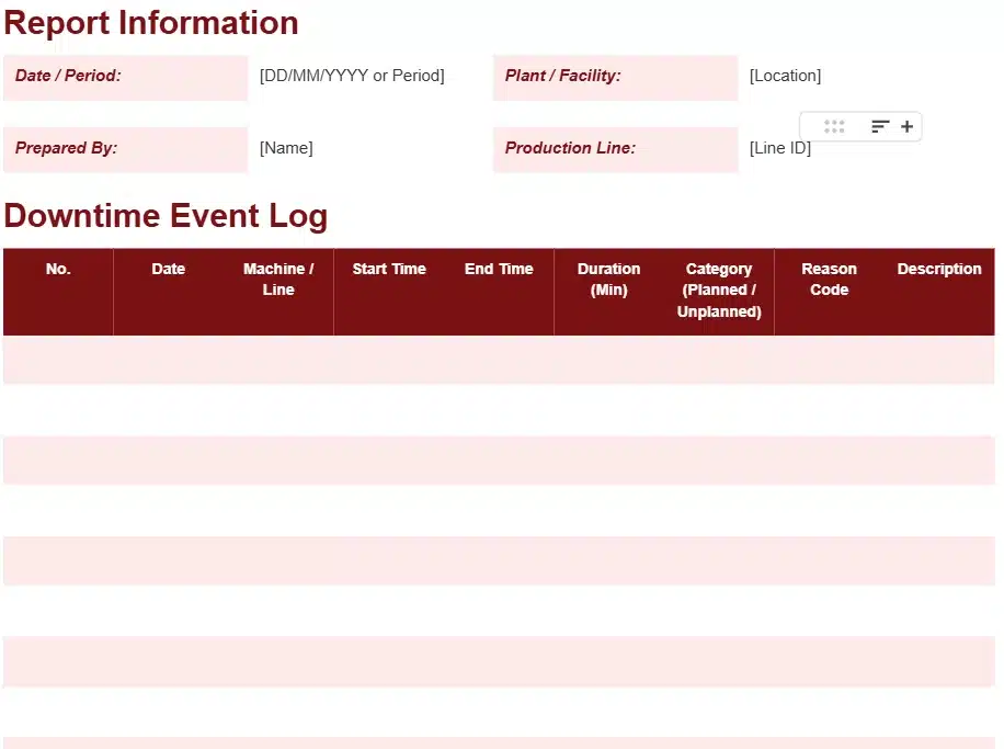 Downtime tracking report template