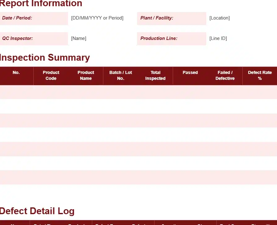 Quality control or defect report template