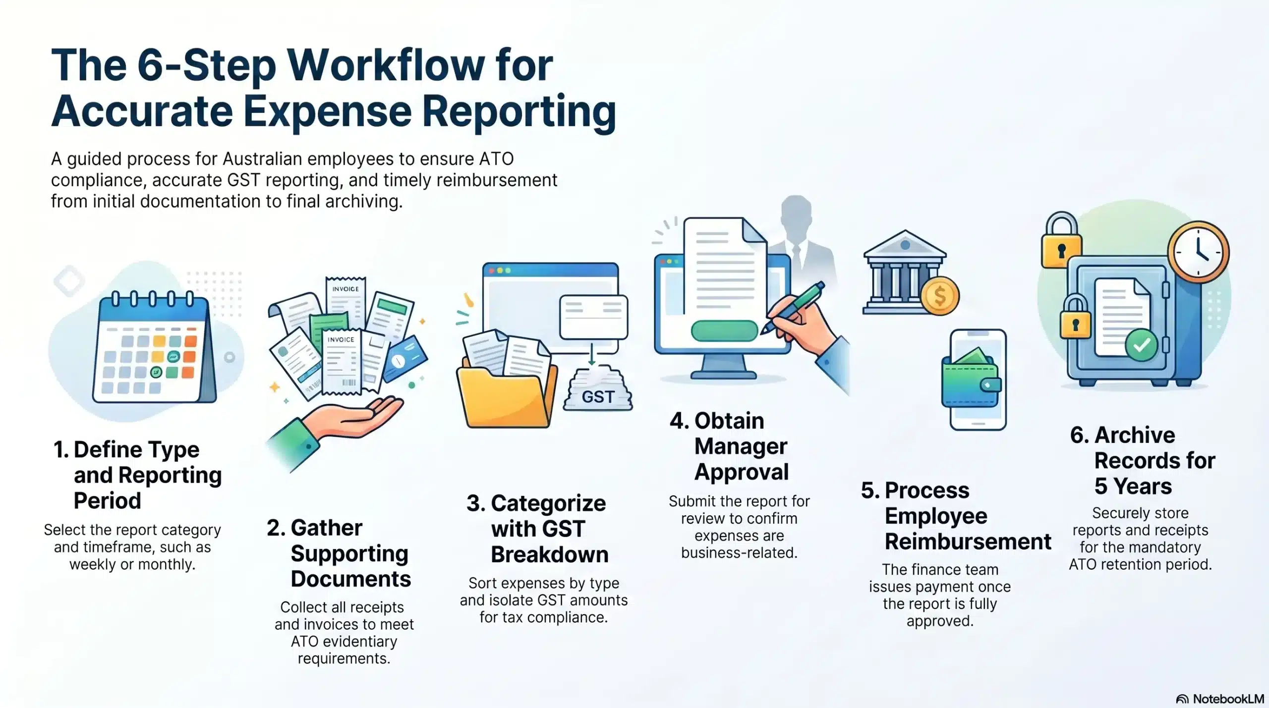 Creating an expense report is easier when you follow a clear process. It helps ensure accuracy, proper approvals, and compliance with ATO requirements.