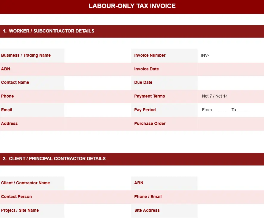 LABOUR-ONLY SUBCONTRACTOR INVOICE TEMPLATE