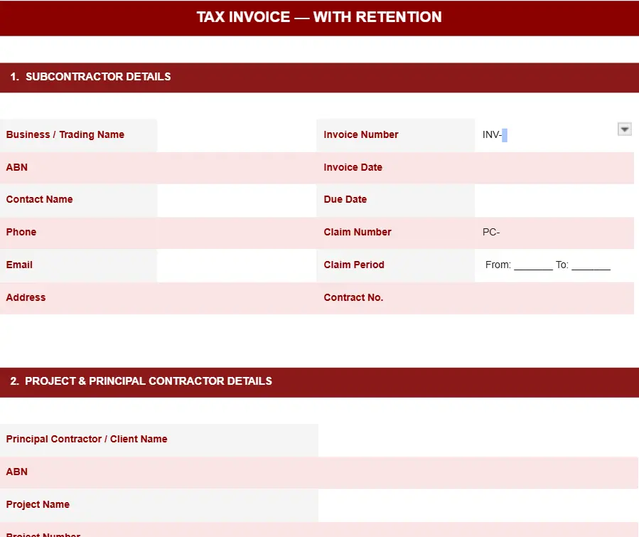 Subcontractor invoices often reflect more complex payment structures, especially in long-term or staged projects. Progress payments and retention are commonly used to manage risk and ensure work is completed as agreed.