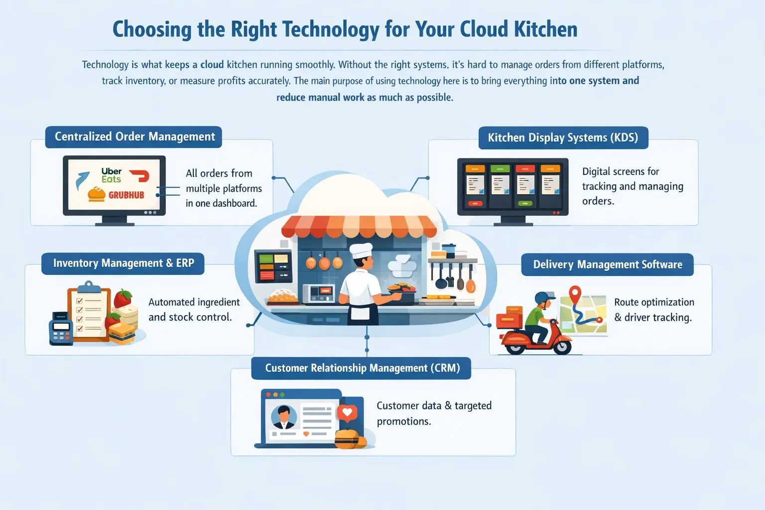 Cloud kitchens have reshaped the way food businesses operate by focusing on delivery, efficiency, and technology rather than dine-in experiences. They offer lower startup costs, faster scalability, and data-driven decision-making, making them attractive for modern entrepreneurs. However, success depends on more than just a good menu; it requires strong operational systems, smart logistics, and effective digital marketing.