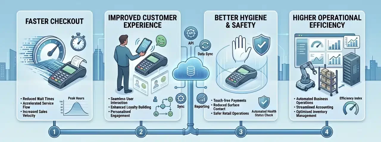 Businesses benefit from faster checkout, better customer experience, and improved operational efficiency.