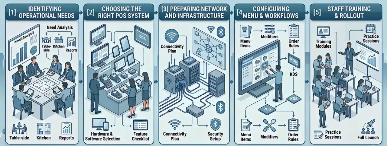 Implementing a restaurant POS system requires more than simply installing new software. A structured approach helps ensure the system fits daily operations and avoids disruptions during service.