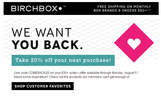 In addition to providing personalized offers to your loyal customers, you also need to pay attention to your retargeting campaigns. Your email subject lines should use clear language alluding to “we miss you” or “where have you been?”