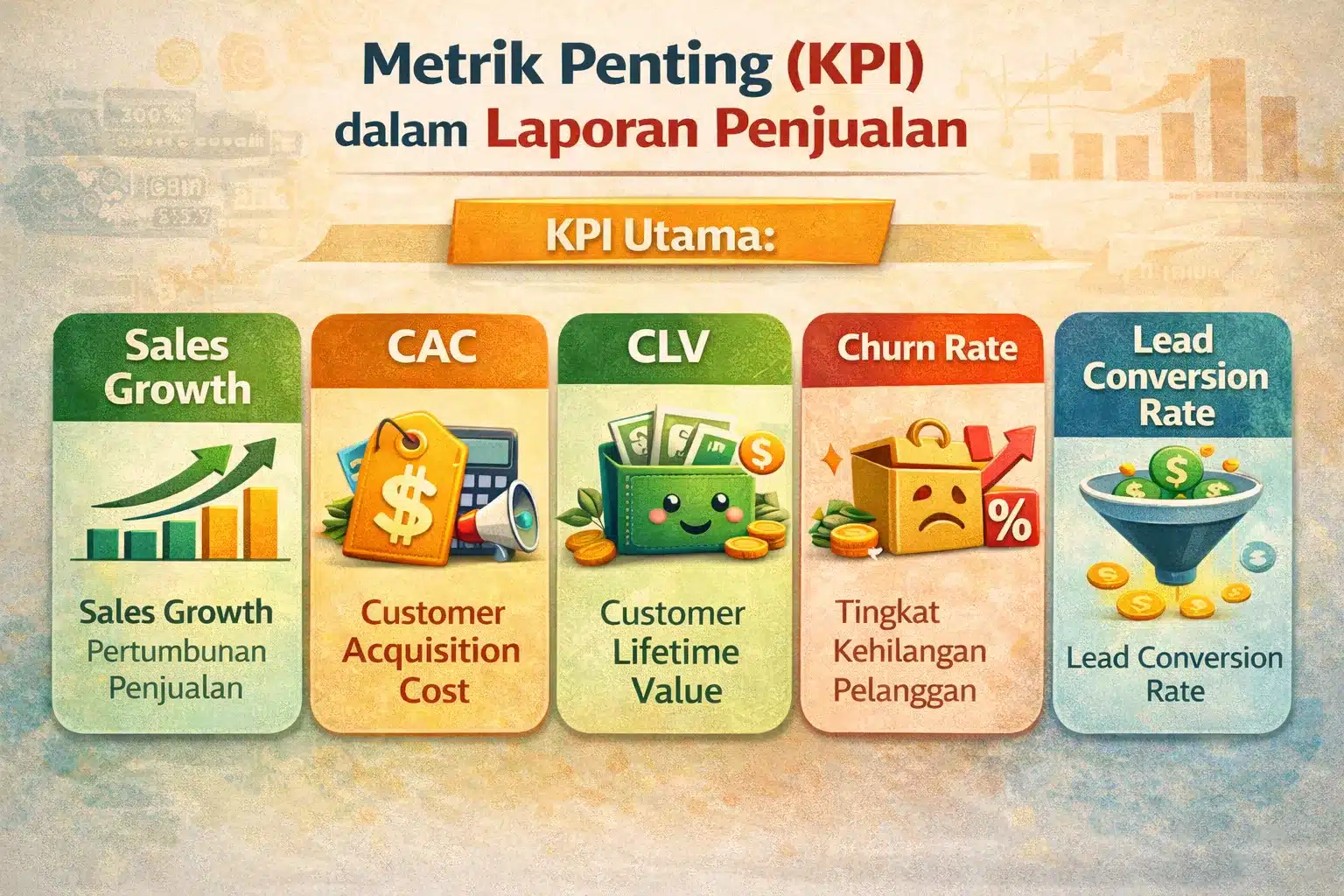 Omzet hanyalah puncak gunung es dari kinerja penjualan yang sebenarnya terjadi di lapangan. Anda perlu memantau berbagai indikator kinerja utama (KPI) untuk memahami kesehatan bisnis secara menyeluruh. Berikut adalah metrik krusial yang wajib ada dalam laporan Anda.