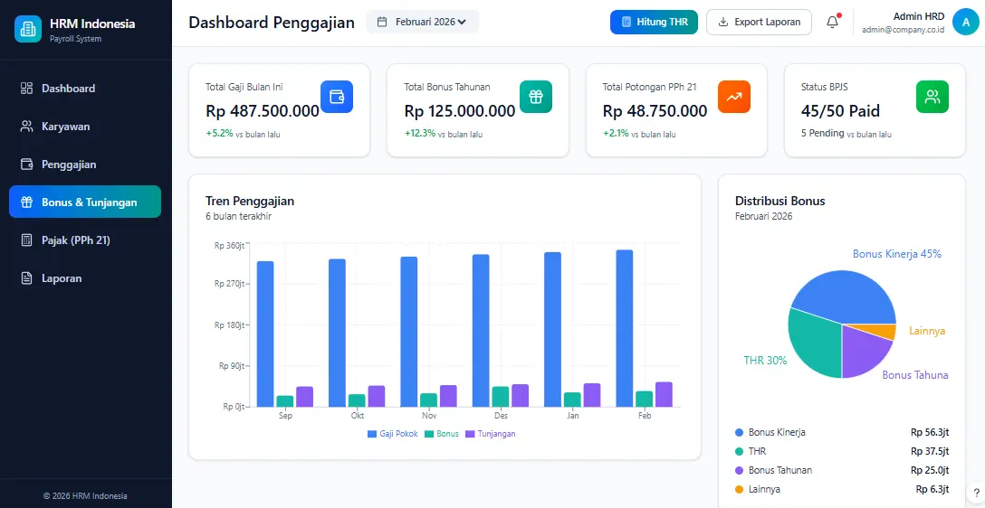 Untuk mempermudah proses perhitungan bonus dan memastikan perhitungan gaji, pajak, serta absensi lebih akurat, perusahaan dapat memanfaatkan sistem HRM terintegrasi. Dengan demikian, seluruh proses penggajian menjadi lebih efisien dan transparan.