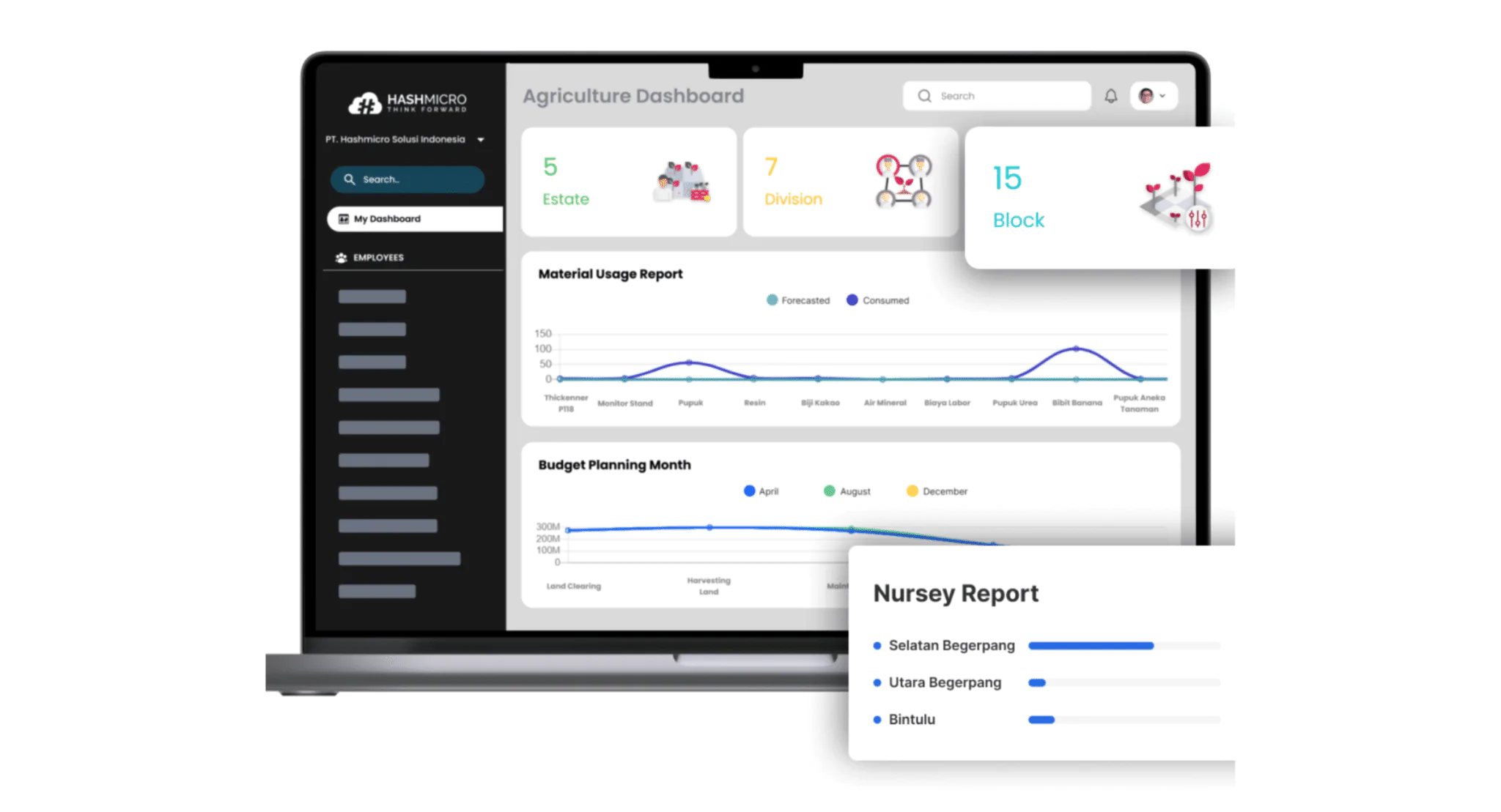HashMicro Smart Agriculture Solution adalah sistem yang telah dipercaya ribuan perusahaan Indonesia. Sistem ini terintegrasi dengan berbagai modul, dari CRM, inventaris, akuntansi, hingga supply chain, yang mengoptimalkan proses operasional Anda.