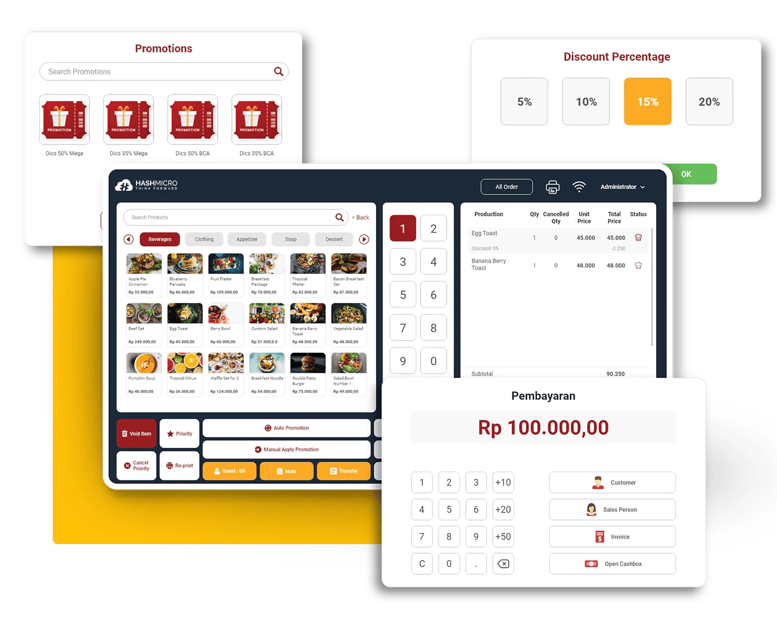 HashMicro menawarkan fitur seperti manajemen inventaris, pelanggan, karyawan, promosi, serta integrasi platform online. Dapatkan demo gratis untuk melihat bagaimana sistem ini dapat mendukung bisnis Anda.