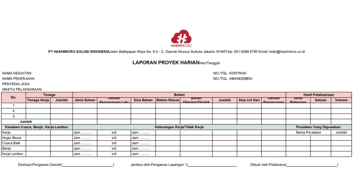 1. Contoh laporan harian proyek
