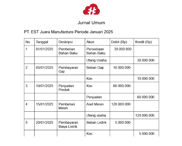Berikut adalah penjelasan komponen utama yang harus ada dalam jurnal umum manufaktur: