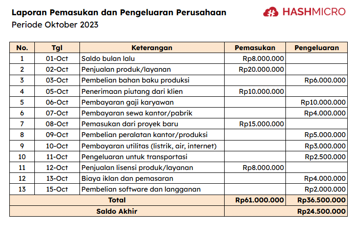 Dengan adanya tabel pemasukan dan pengeluaran ini, diharapkan dapat memberikan gambaran yang jelas mengenai kondisi finansial perusahaan, sekaligus menjadi bahan evaluasi untuk pengambilan keputusan keuangan ke depannya.