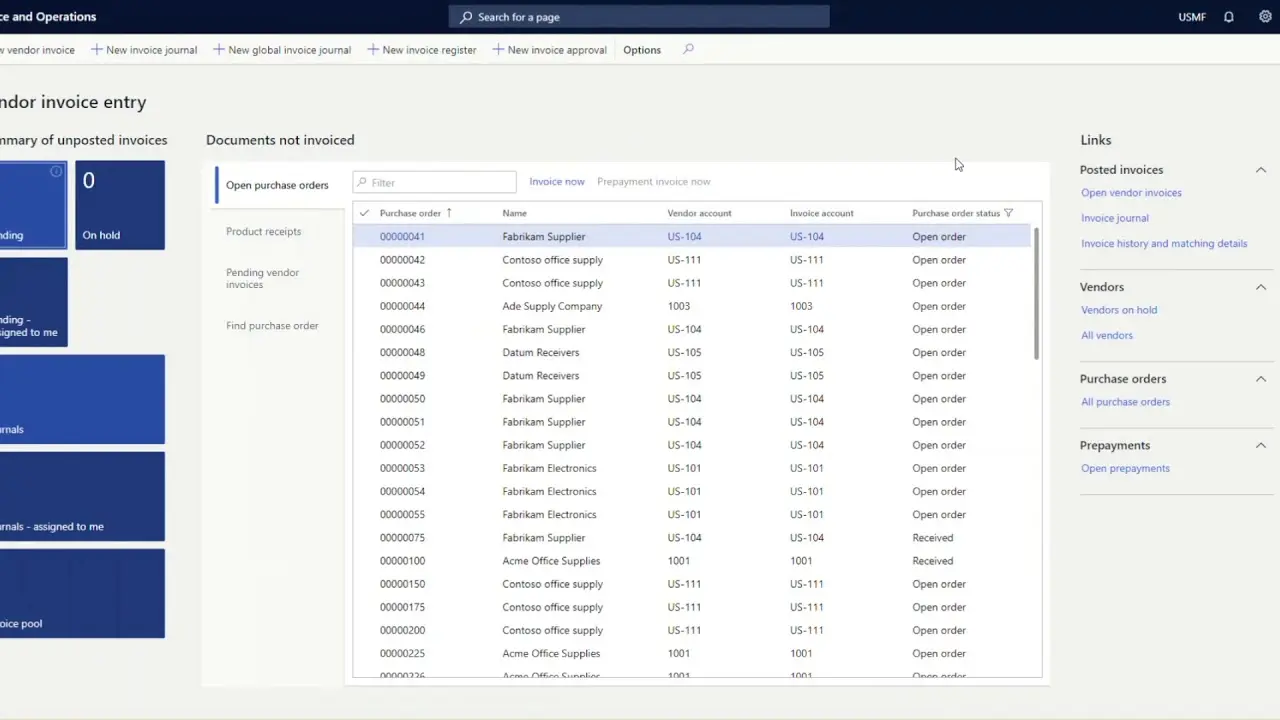 - Automated 2- and 3-way invoice matching