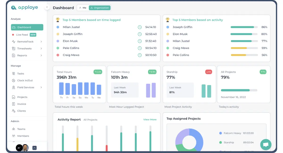 Apploye is an HR software solution designed for time tracking, employee monitoring, and payroll management. It helps boost productivity and ensures precise payroll processing by providing detailed tracking of time and activities.