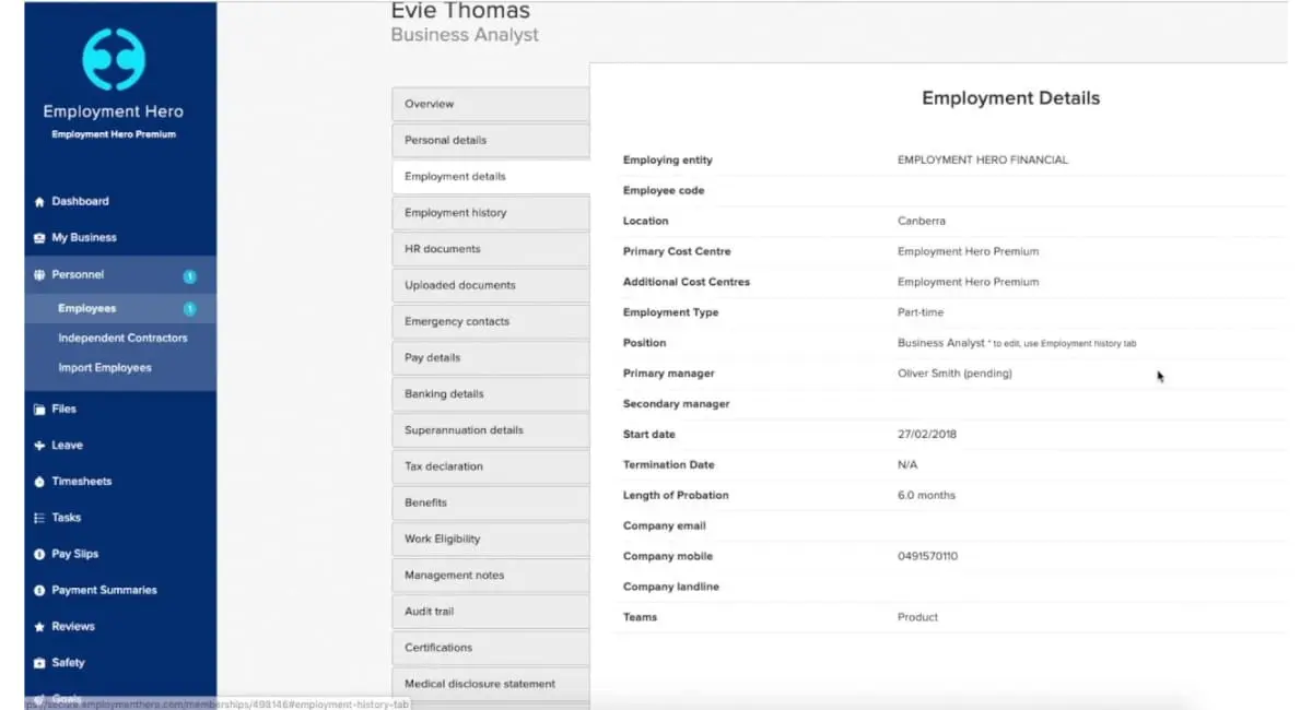 Employment Hero’s prominent features are: