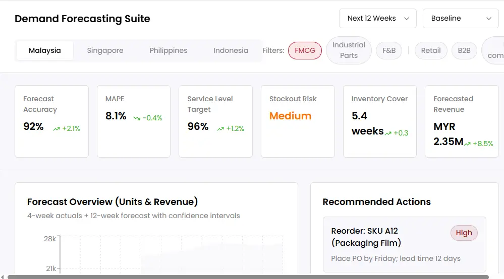In Malaysia, forecasting is a critical consideration because demand can shift with festive seasons, promotions, and fast-moving online purchasing patterns. Whether it is a retailer preparing for peak periods or a manufacturer balancing raw materials, stronger forecasts help teams meet expectations without tying up cash in excess stock.
