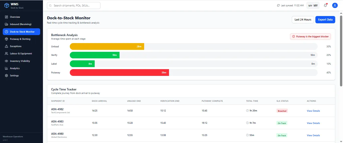 Dock-to-stock is one of the simplest metrics to track, yet it has an outsized impact on warehouse performance. When cycle time drops, operational costs fall, inventory accuracy improves, and customer orders move faster.