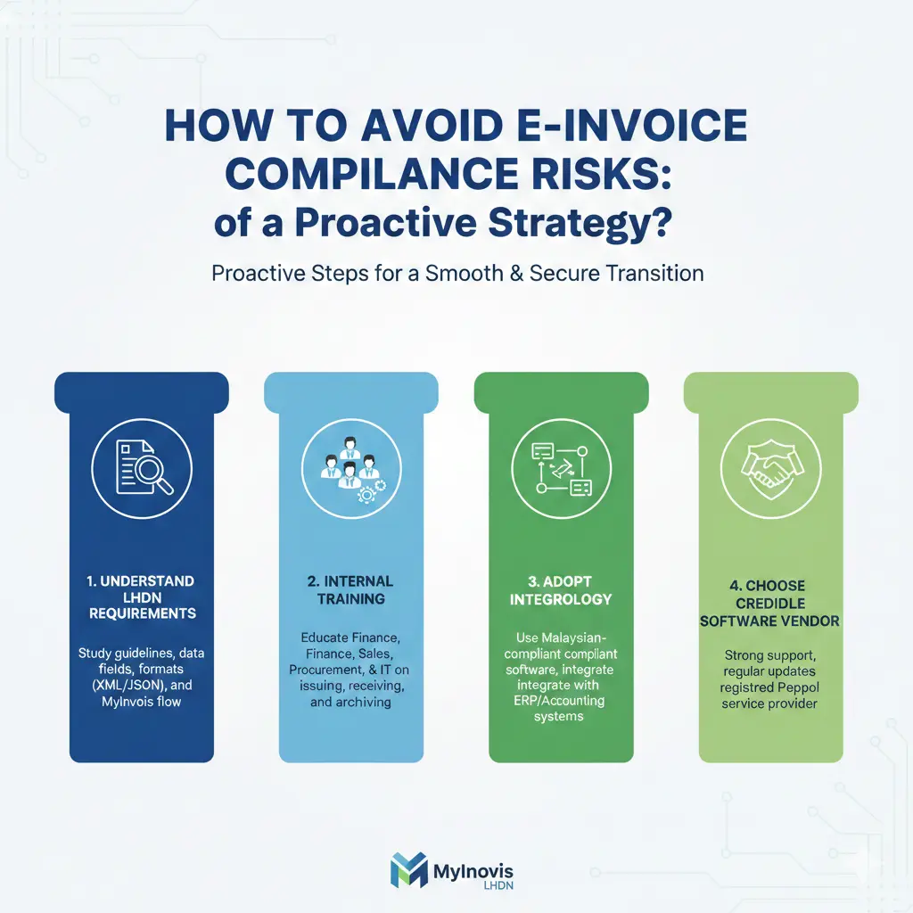 Facing the array of risks involved, a proactive approach is the only way to ensure a smooth and secure transition to e-invoicing. The official LHDN e-invoice portal provides detailed guidelines that should be the basis of your strategy. Here are the key pillars of an effective strategy to mitigate e-invoice compliance risks.