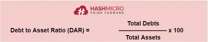 - Debt to Asset Ratio (DAR): This ratio compares a company’s total liabilities to its total assets. The formula for this financial ratio is: